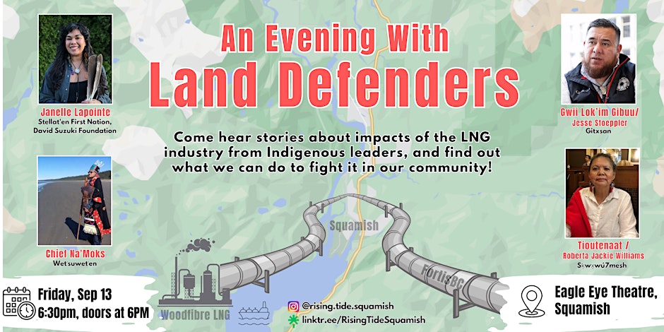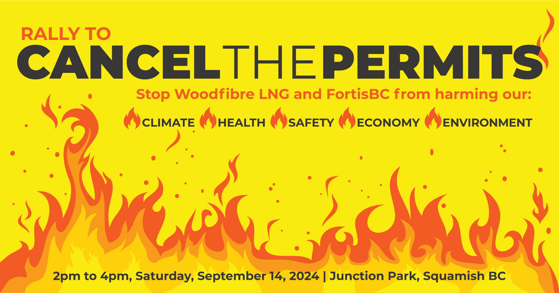 Join My Sea to Sky on Saturday, September 14, 2024 at 2pm in Squamish to send a flaming message to the BC government calling to cancel the permits for Woodfibre LNG and FortisBC's fracked gas pipeline.